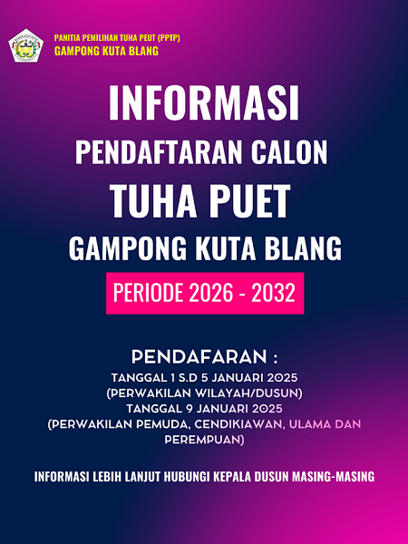 PENDAFTARAN CALON TUHA PUET GAMPONG KUTA BLANG PERIODE 2026 - 2032