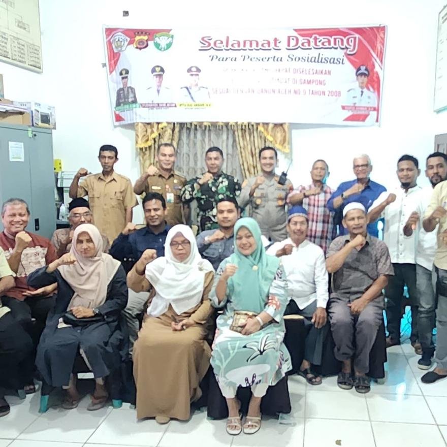 Kapolsek Banda Sakti Iptu Zul Akbar dan Danramil 16 Banda Sakti Kapten Arm Junaidi menjadi pembicara pada kegiatan sosialisasi tentang Qanun nomor 9 tahun 2008 tentang 18 (delapan belas) perkara yang diselesaikan secara adat istiadat di Gampong di Kantor Keuchik Gampong Kuta Blang Kecamatan Banda Sakti Kota Lhokseumawe, Selasa (29/10/2024).
