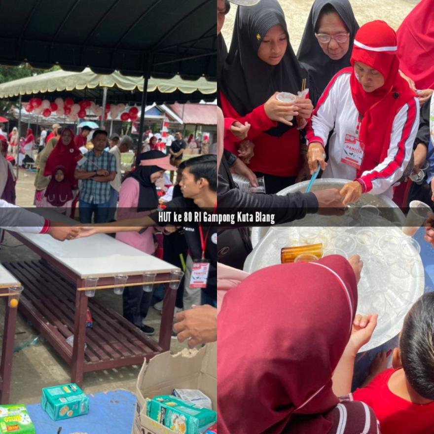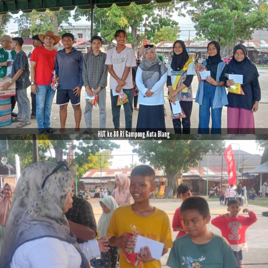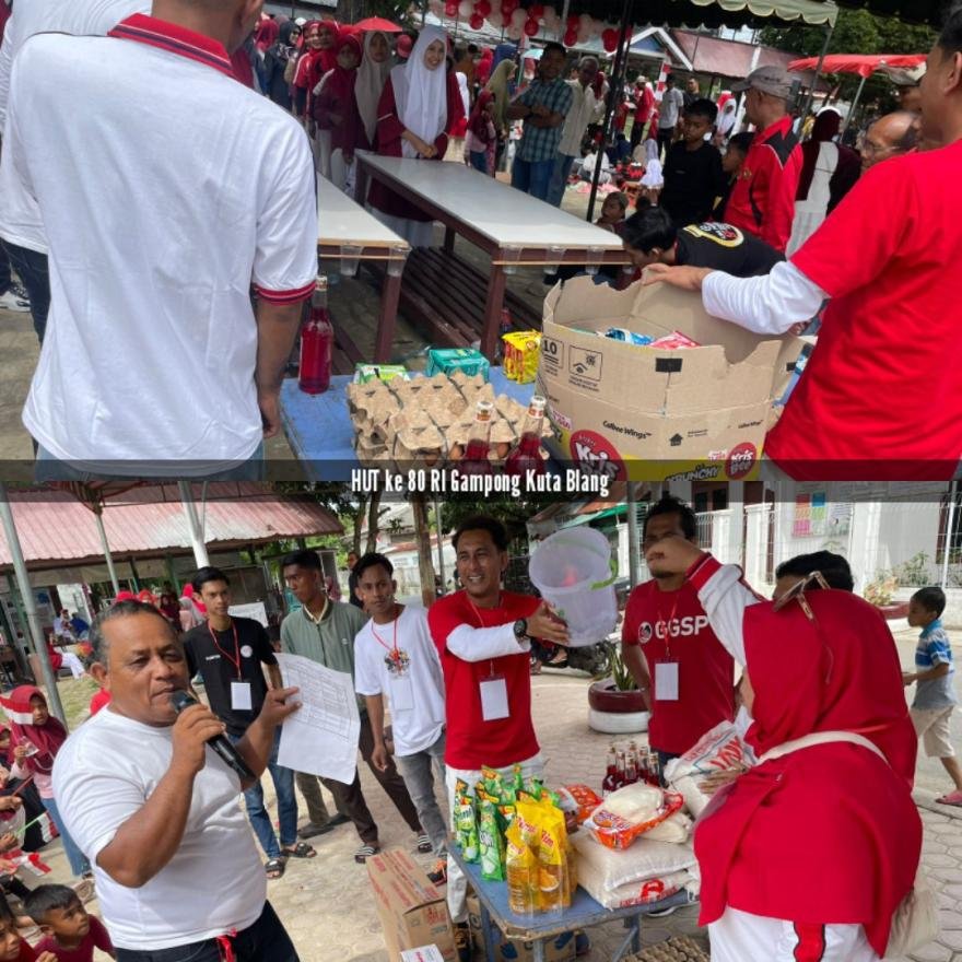 Dokumentasi semarak HUT ke 80 RI di Gampong Kuta Blang yang dilaksanakan dilapangan kenari Gampong Kuta Blang, Senin, 18 Agustus 2025. Acara dimulai dari jalan santai kemudian dilanjutkan dengan aneka perlombaan dan permainan dan ditutup dengan perlombaan layangan tradisional.